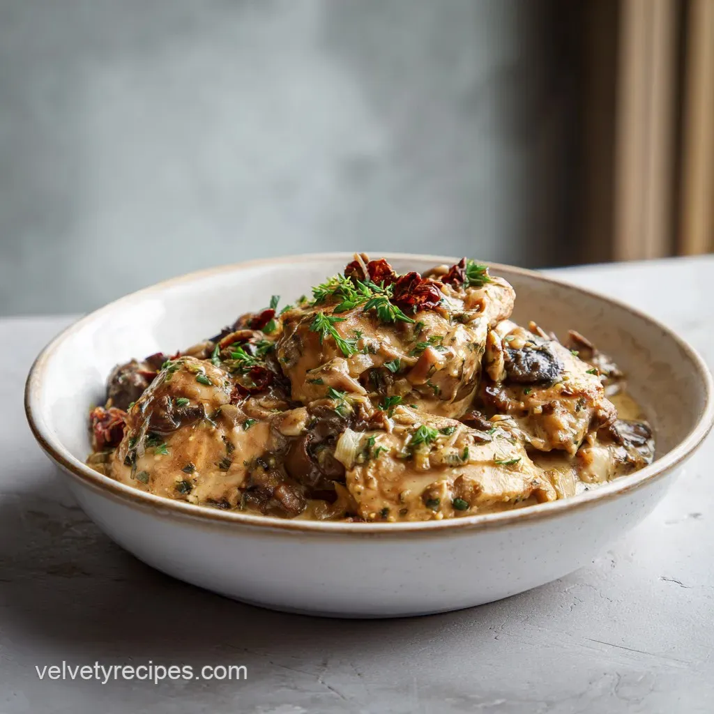 Start by seasoning 2 lbs of chicken thighs with salt, pepper, and smoked paprika, then place them in the bottom of your slow cooker. Pour a mixture of chicken bone broth, minced garlic, Italian seasoning, and red pepper flakes over the chicken, top with sun-dried tomatoes, and cook on LOW for 5-6 hours until the internal temperature reaches 165°F (74°C).